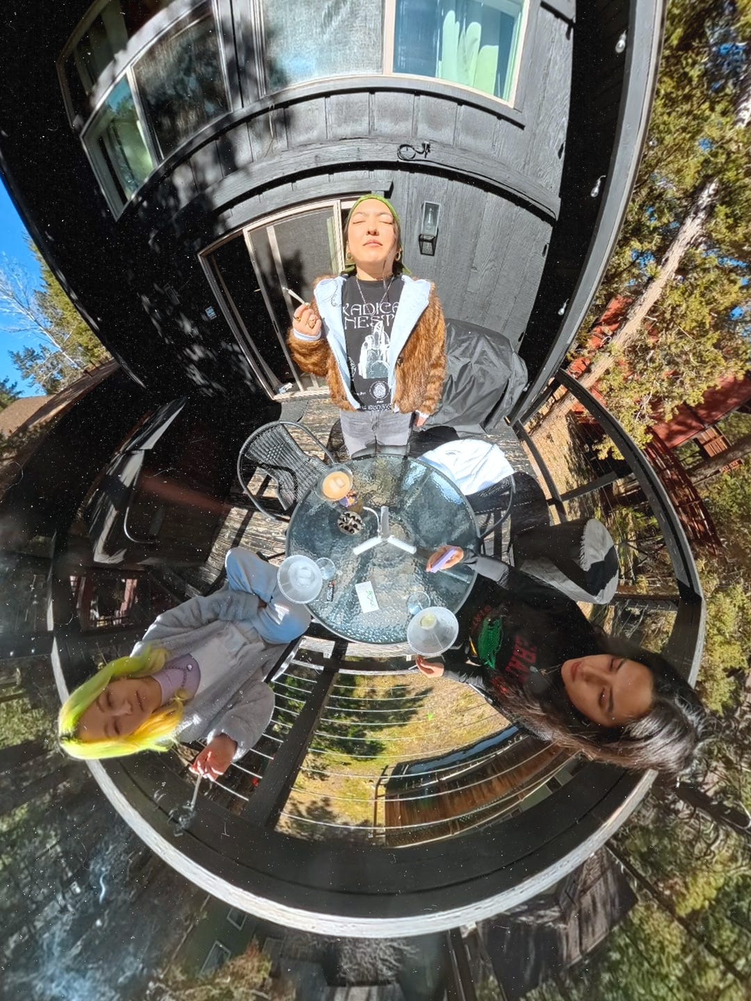 the skies were clear and the air was crisp. snow was melting all around us. countless smoke and dance circles later, we managed to document the creative energy flowing through us and those cabin walls– philosophical riffs, a B2B chef x DJ set, and obligatory vibe/fit checks.