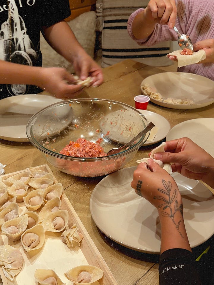we wrapped the day making wontons 🥟🥁 mocking up flyer designs, and playing intimate board games while sipping the finest tea from wendy’s beautifully crafted tea set and ceramic cups.